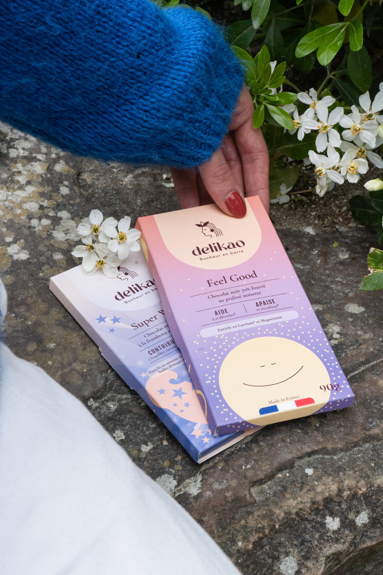 • Chocolat Feel Good: Consommez 4 carrés par jour (environ 15g) sur la semaine pour vous aider à vous détendre.